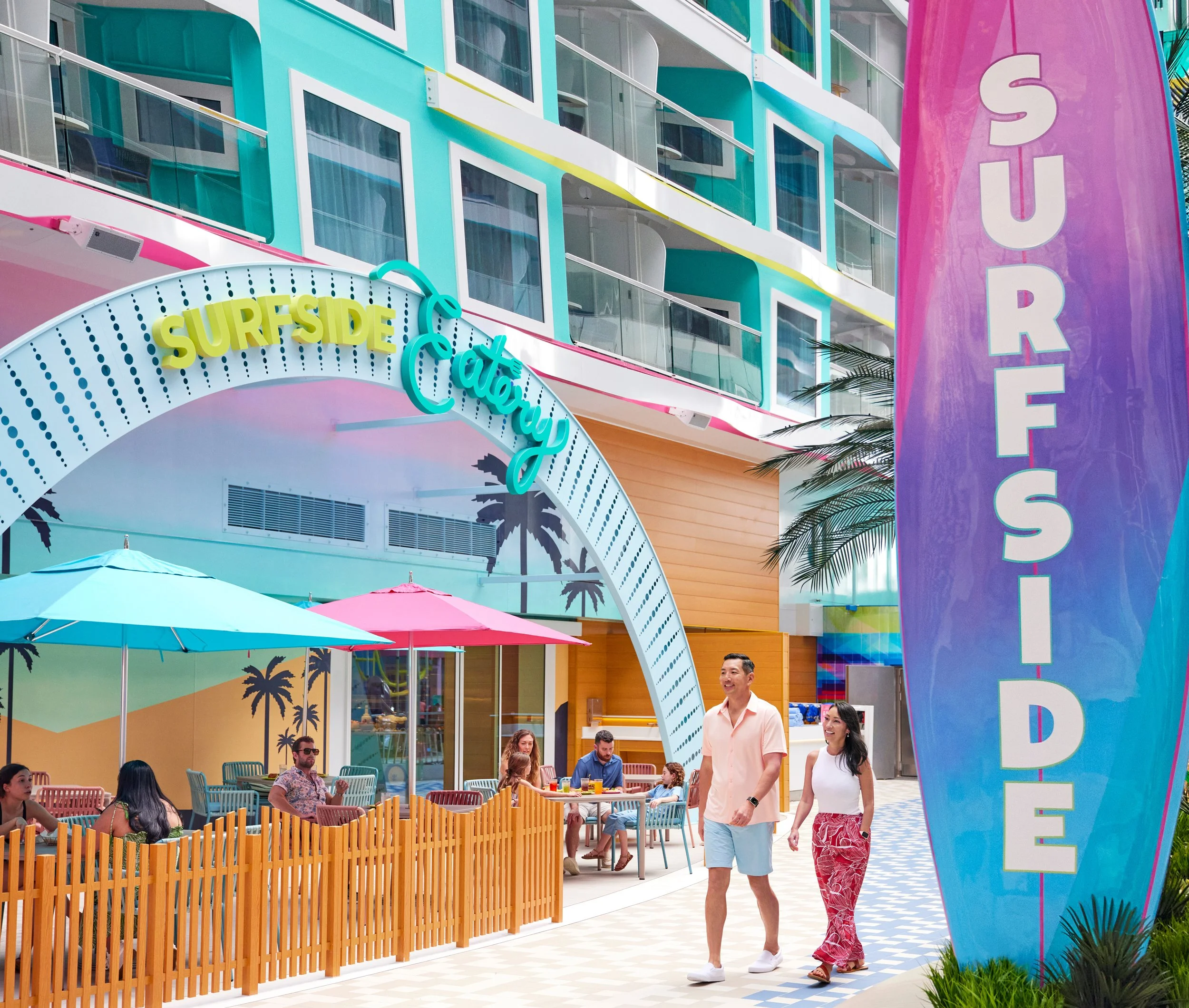 The vibe: A brand-new concept just for Icon Class ships, Surfside is Royal Caribbean’s dedicated family neighborhood, built for parents with little ones. It’s bright, colorful, and packed with fun — think splash zones, surf-themed dining, and ocean views in the distance.