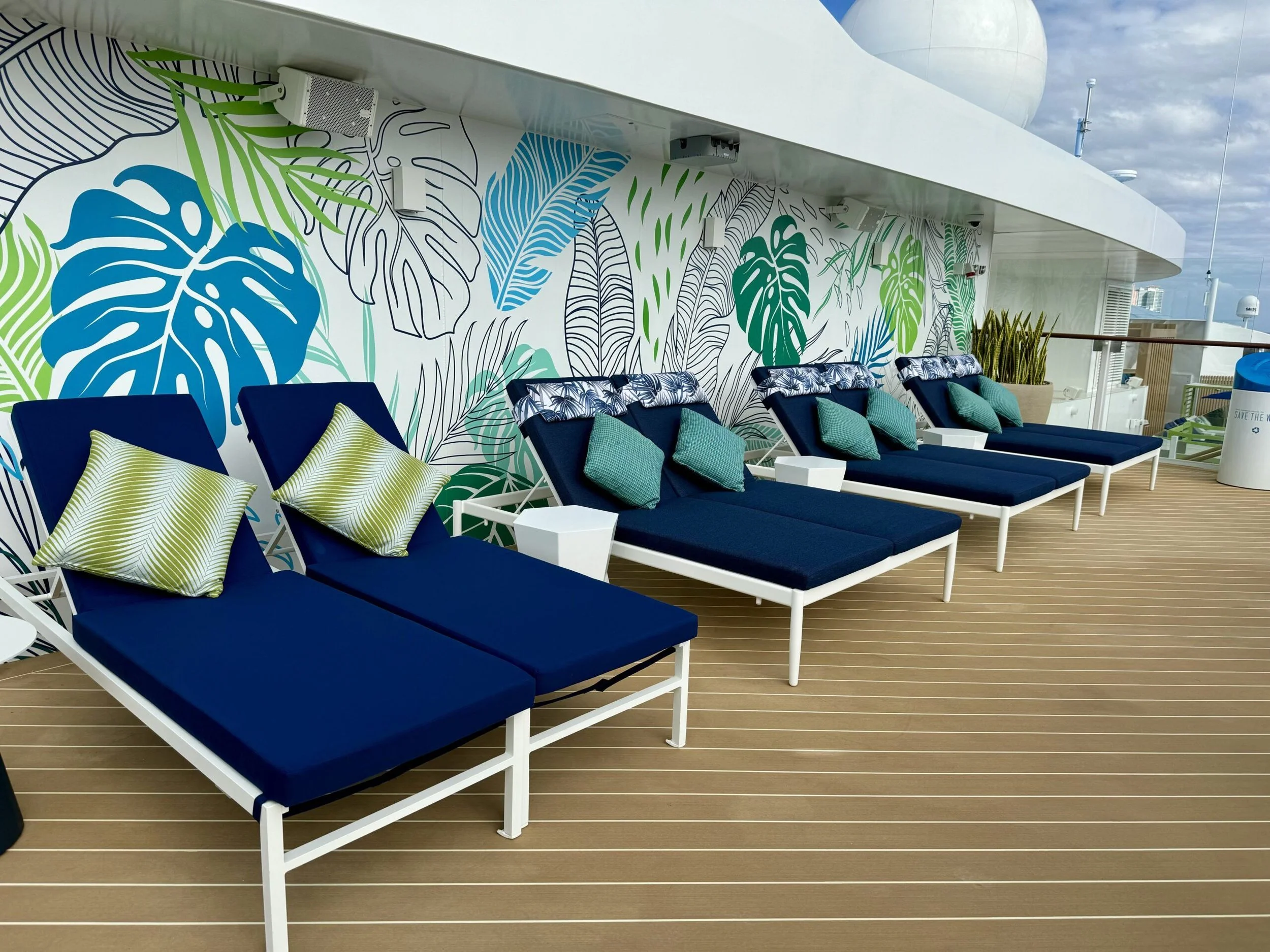 What to expect: Pool decks, whirlpools, bars, relaxing balconies, sunbathing zones, comfy lounges.