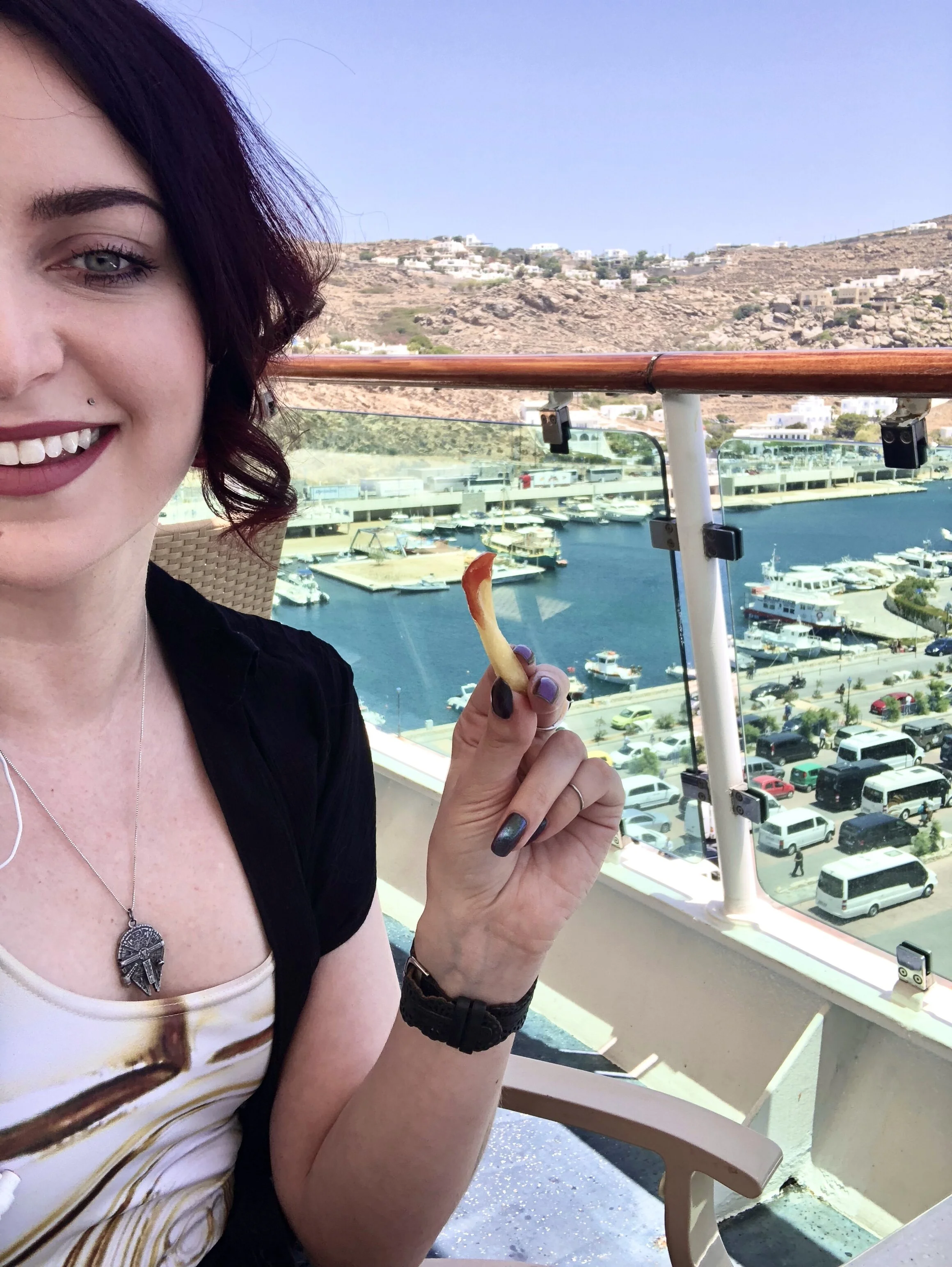 Cruise Christina’s diet consists of a daily plate of french fries. It’s vacation! Carbs don’t count!